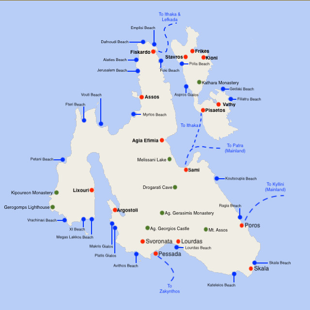Best know for Lourdas, Svoronata, Lakithra, Metaxata and Peratata.